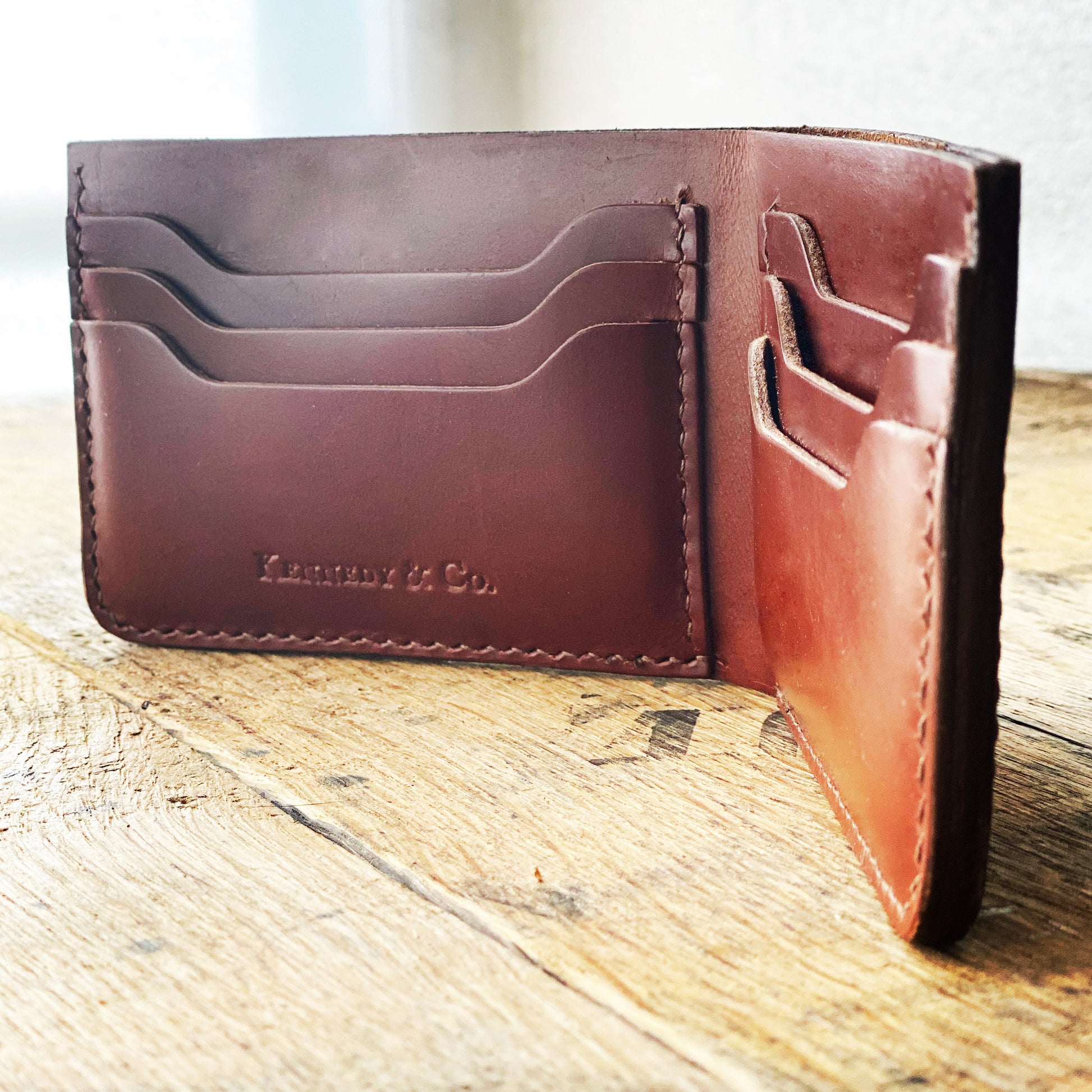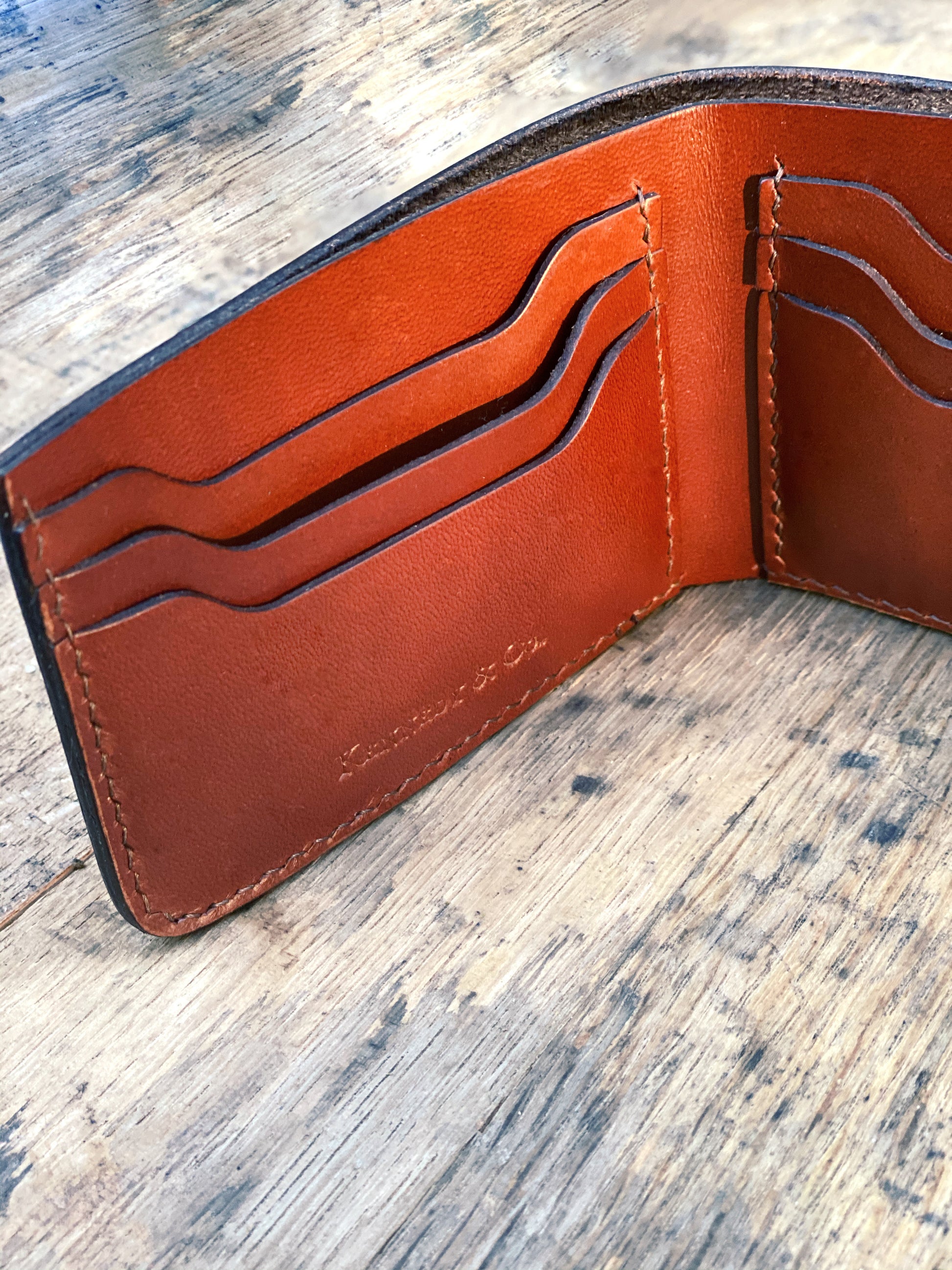 The KCO original billfold wallet boasts clean lines, and is hand crafted from high quality Italian calf leather. Each wallet is stitched by hand and then the finishing edges are burnished.